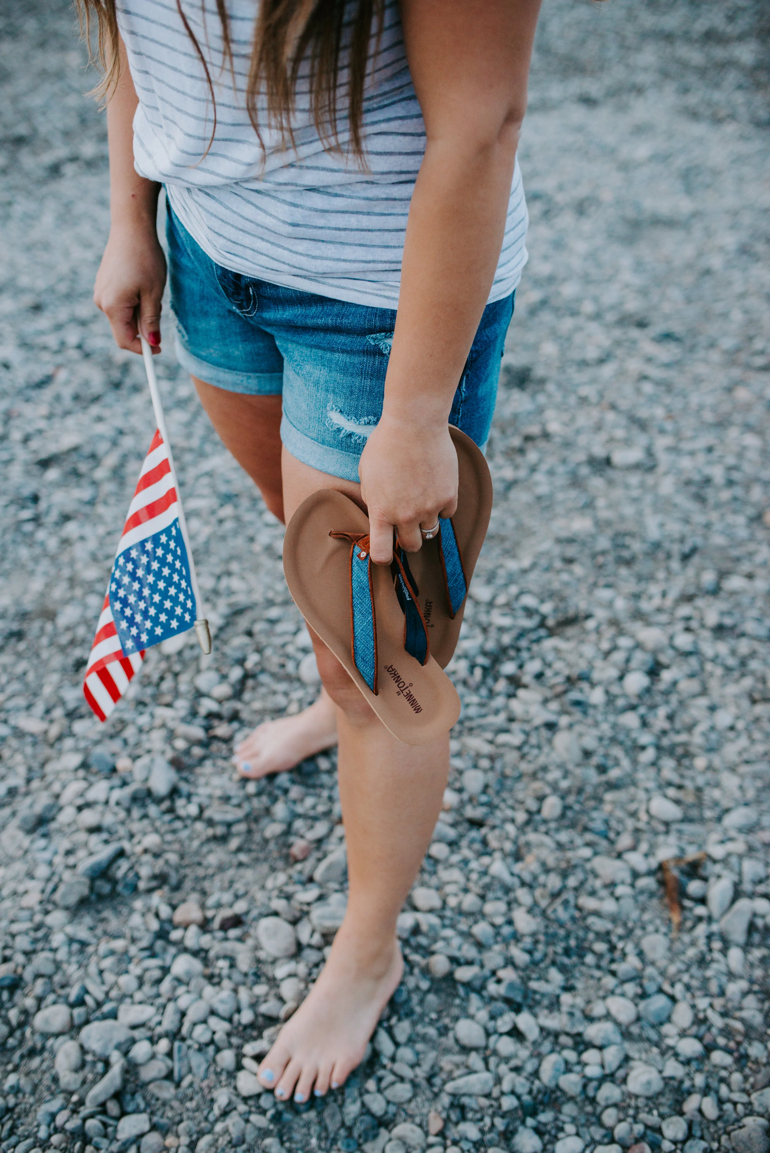 1) What's more American than denim?! Cut-offs, white jeans, a denim jacket, or even our cute denim stripe flip flops are the perfect American touch.