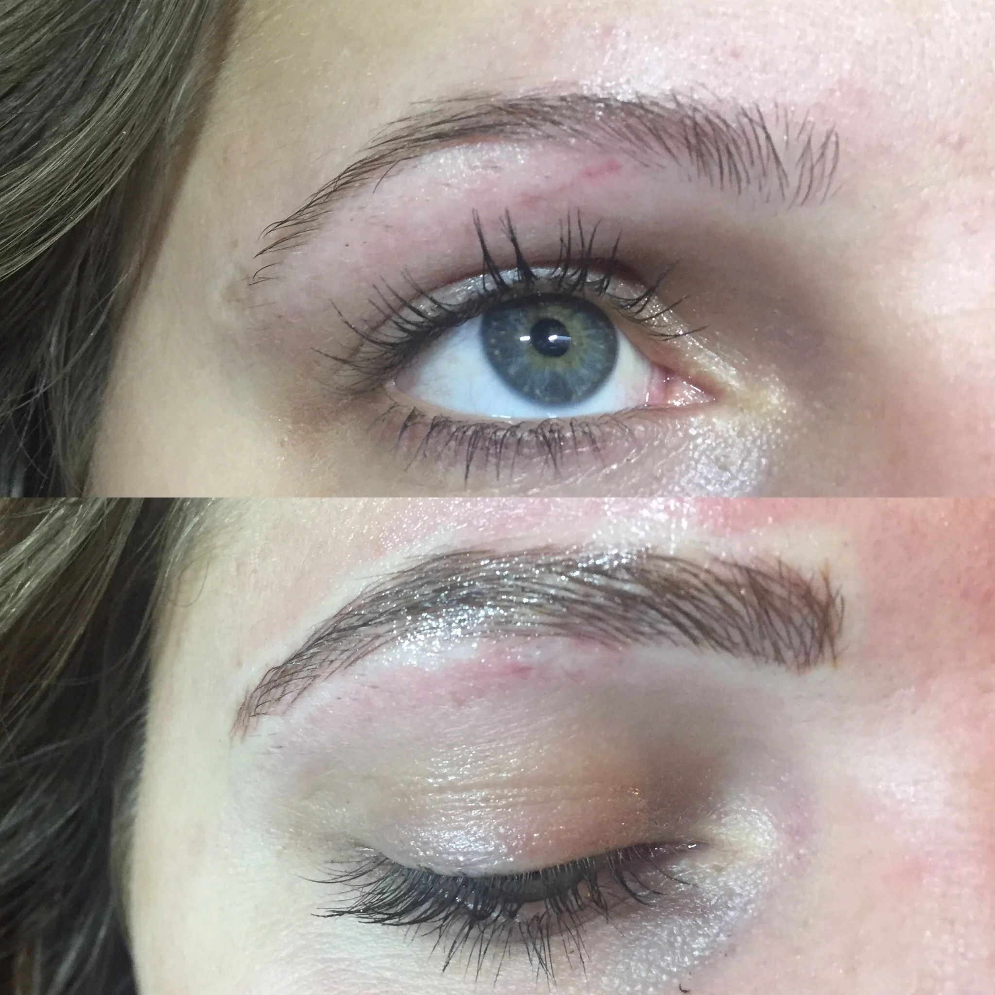 This manual method of tattooing deposits pigment into the epidermis using a very fine blade. Because it is much shallower than the average tattoo, the results are a very fine “hair” with no “spilling” under the surface. There should be no differentiation from your natural brows and the new “hairs”.